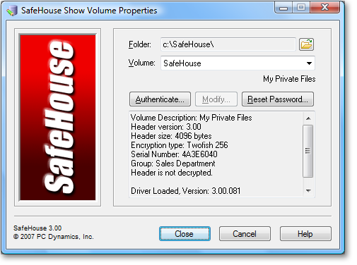 You can change the underlying properties of your SafeHouse volumes using the SafeHouse Show Volume Properties dialog. You probably won't need to use this feature that often, but it's good to have when you need it.